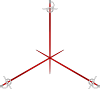 The legacy livery collar is made of white leather, with plaques attached, created by Mistress Aelfwyn. There are seven trilliums representing the Seven Virtues, eight wolves (using the artwork from Duke Edouard) separating them. All is in brass and nickel silver with translucent red enamels for the wolves. The medallion is open as the official badge of the Order is fieldless.