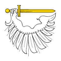 The Order of the Peregrine was given to those who had, by conspicuous and continuing effort, improved their own skills of war and provided inspiration to others. These skills included, but were not restricted to, scouting, archery, and armoured combat. Companions of the order may place the initials CPE after their names, and may wear a medallion bearing the badge: (Fieldless) A wing terminating in a hand argent maintaining a sword fesswise reversed Or.