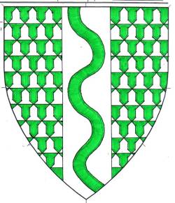 - Device: Vairy vert and argent, on a pale argent a pallet wavy vert.