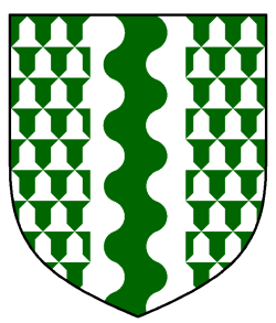 - Device: Vairy vert and argent, on a pale argent a pallet wavy vert.