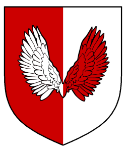 - Arms: Per pale gules and argent, a vol counterchanged.