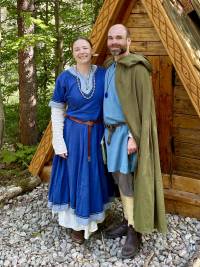 The Honourable Lady Gwendolyn of Aldburg (she/her) is a Saxon woman, originally from Aldburg in the mid 10th century. Her father was a merchant who traded in the Aldburg port, and her mother was a weaver and the daughter of Ælfwine, a mariner. Soon after Gwendolyn was born, her grandfather Ælfwine set sail on a long journey with three companions. He came back a changed man, with incredible but far-fetched stories of his journey. Gwendolyn was close to her grandfather, and was one of the few who believed his wild tales.