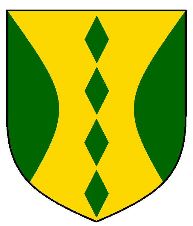 Helen's heraldry looks like a green cotehardie with a golden surcoat on top. The surcoat has four emerald lozenges on it for buttons. Sadly, she has never made this outfit… but there is still time.