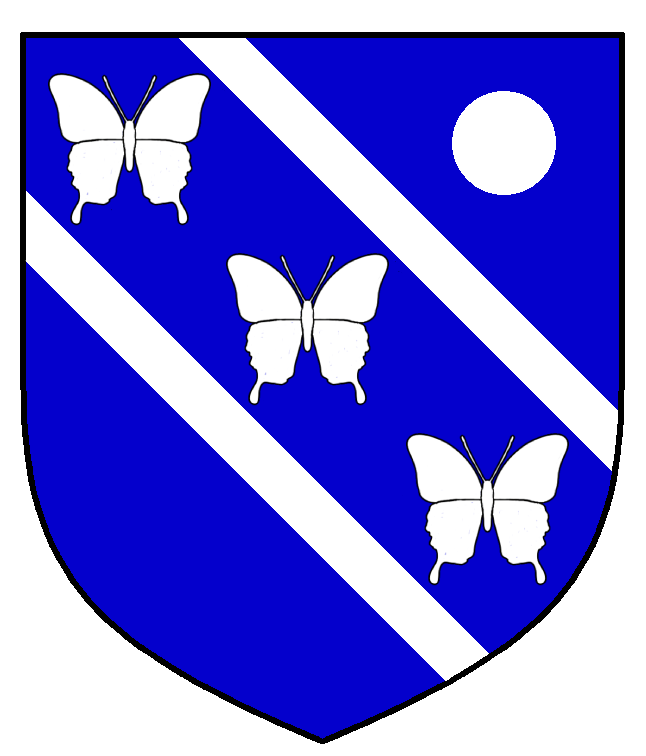 - Device: Azure, in bend three butterflies between two bendlets argent, for augmentation in sinister canton a plate.