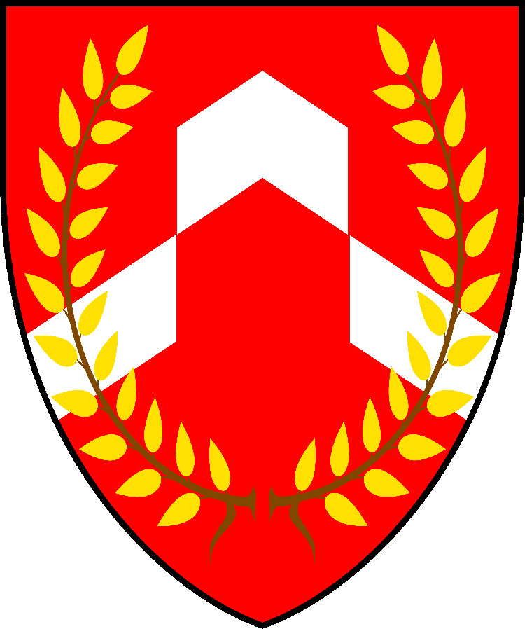 - The arms of the Canton of Caldrithig: 'Gules, a chevron rompu argent overall a laurel wreath Or.'