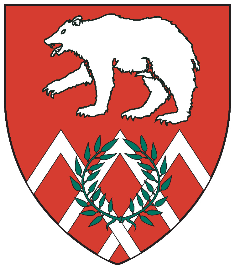 - The arms of the Barony of Septentria: 'Gules, three chevronels braced surmounted by a laurel wreath proper, and in chief a bear passant Or.'