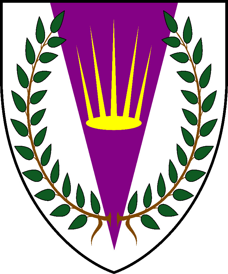 - The arms of the Canton of Greyfells: 'Argent, on a pile purpure a sunburst Or, overall a laurel wreath vert.'