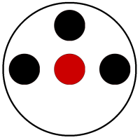 - Device: (Unregistered) Argent, in fess a torteau between two pellets, in chief a pellet.