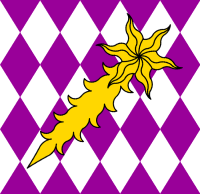 - Badge: Lozengy purpure and argent, a comet bendwise sinister Or.