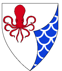 Argent, a polypus gules, a gore sinister azure papellony argent.
