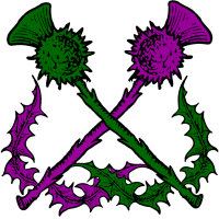 - Badge: (Fieldless) In saltire a thistle vert and a thistle purpure.