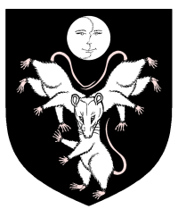 - Device: Sable, a tricorporate opossum and in chief a moon in her plentitude argent.