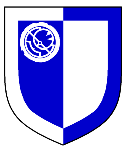 - Device: Per pale azure and argent, in canton an astrolabe argent, a bordure counterchanged.