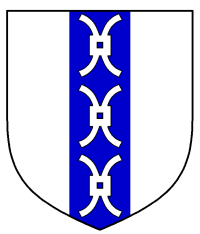 - Badge: (Fieldless) On a pear vert a millrind argent.