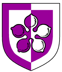 - Device: Per pale argent and purpure, a cinquefoil and a bordure counterchanged.