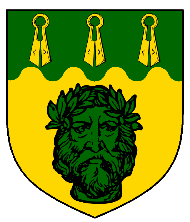 Arms: Or, a savage's head couped affronty, on a chief wavy vert three pairs of shears Or.