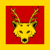 - Badge: Gules, a wolf's head cabossed attired, a bordure Or. (Shared with Margrét Junc)