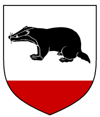 - Device: Argent, a badger sable and a base gules.