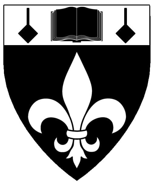 Sable, a fleur-de-lys argent, on a chief the same an open book between two musical notes sable.