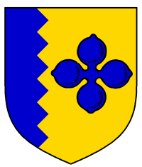 - Device: Or, a quatrefoil and a tierce indented azure.