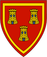 - Device: Gules, three towers and an orle Or.