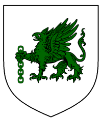 - Device Argent, a griffon passant vert maintaining in its forelimb a length of chain vert.