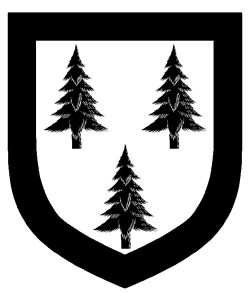 - Arms: Argent, three pine trees couped within a bordure sable.