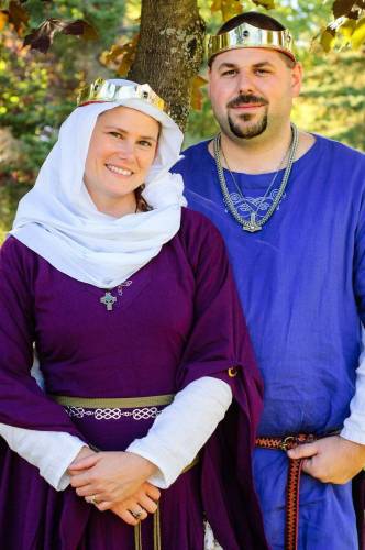 - Kolbjorn & Wencenedl of Ramshaven at Fall Coronation, AS 42. Photo by Kyle Andrews