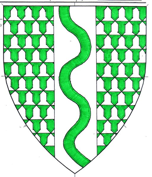 Eluned verch Angor: 'Vairy vert and argent, on a pale argent a pallet wavy...